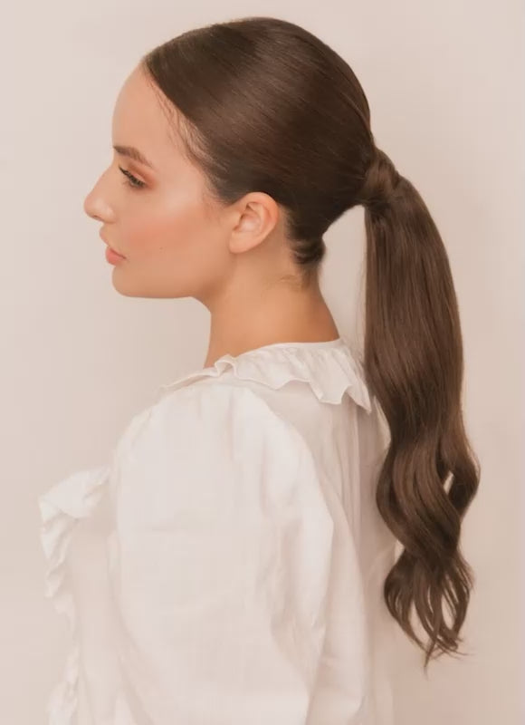 The clip and wrap-around design makes application quick and secure. Simply clip the extension over your natural ponytail and wrap the integrated strand of hair around the base for a seamless, polished finish.
