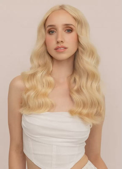 Take your look to the next level with our 16 inch Deluxe Clip-In Hair Extensions in Bleached Blonde. Crafted from the highest grade 100% genuine Remy human hair, these premium extensions provide luxurious length, volume, and a soft, silky finish that blends seamlessly with your natural hair.
