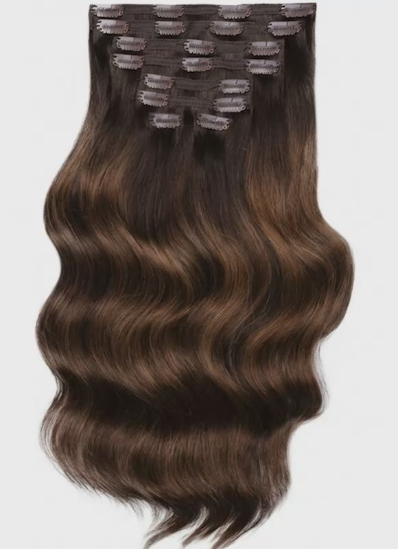 16 inch Full Volume Clip in Hair Extensions Mocha & Medium Brown Balayage