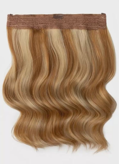 Achieve fuller, thicker hair in seconds with our 16 inch Halo Hair Extensions in Light Brown with Light Blonde Highlights #12/613. This striking blend features an even, striped mix of light brown and light blonde strands throughout, creating a bold, dimensional highlighted look. Both colours are evenly distributed for a high-contrast finish that adds brightness and depth to your style.
