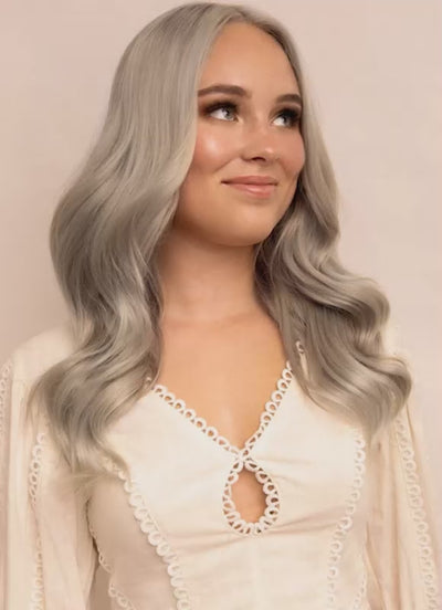 Indulge in the thickest, most luxurious hair extensions we offer — our 16 inch Ultimate Volume Clip-In Hair Extensions in Silver. Crafted from double drawn, 100% cuticle-aligned Remy human hair, these premium extensions deliver exceptional thickness from top to ends, a soft, silky feel, and stunning, natural-looking volume.