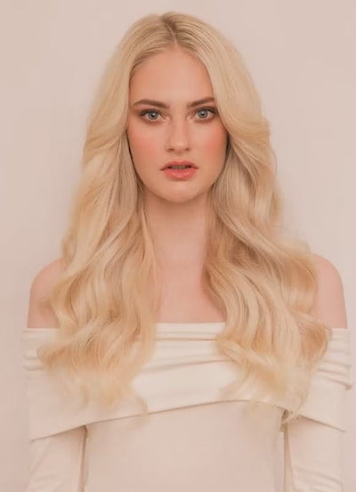 Take your look to the next level with our 20 inch Deluxe Clip-In Hair Extensions in Light Blonde. Crafted from the highest grade 100% genuine Remy human hair, these premium extensions provide luxurious length, volume, and a soft, silky finish that blends seamlessly with your natural hair.