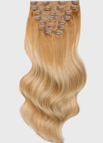 20 inch Seamless Clip in Hair Extensions Ash Brown & Light Blonde Balayage