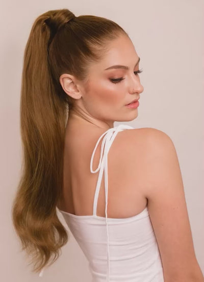The clip and wrap-around design makes application quick and secure. Simply clip the extension over your natural ponytail and wrap the integrated strand of hair around the base for a seamless, polished finish.