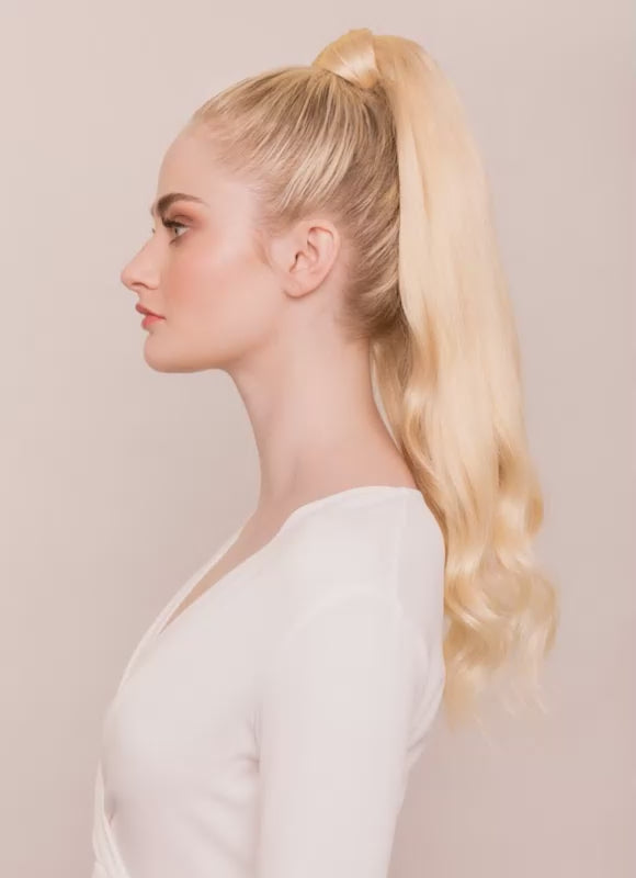 Get the perfect ponytail in seconds with our 22 Inch Clip-In Ponytail Extension in #60 Light Blonde. Crafted from double drawn, cuticle-aligned 100% Remy human hair, this premium clip-in piece adds instant length, volume, and sleek style to your natural ponytail — without the need for teasing or damage.