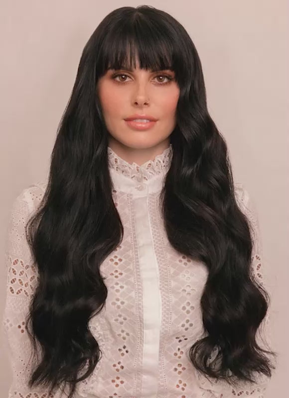 Achieve fuller, thicker hair in seconds with our 22 inch Halo Hair Extensions in Jet Black. Crafted from 100% Remy human hair, this innovative one-piece extension offers a comfortable, lightweight, and temporary alternative to traditional methods like clips, glues, beads, and weaves.