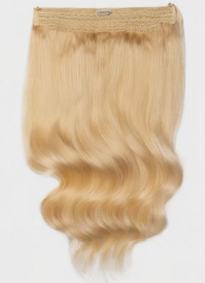 Achieve fuller, thicker hair in seconds with our 22 inch Halo Hair Extensions in Bleached Blonde. Crafted from 100% Remy human hair, this innovative one-piece extension offers a comfortable, lightweight, and temporary alternative to traditional methods like clips, glues, beads, and weaves.