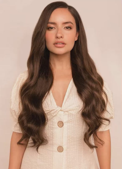 Take your look to the next level with our 24 inch Deluxe Clip-In Hair Extensions in Mocha Brown. Crafted from the highest grade 100% genuine Remy human hair, these premium extensions provide luxurious length, volume, and a soft, silky finish that blends seamlessly with your natural hair.