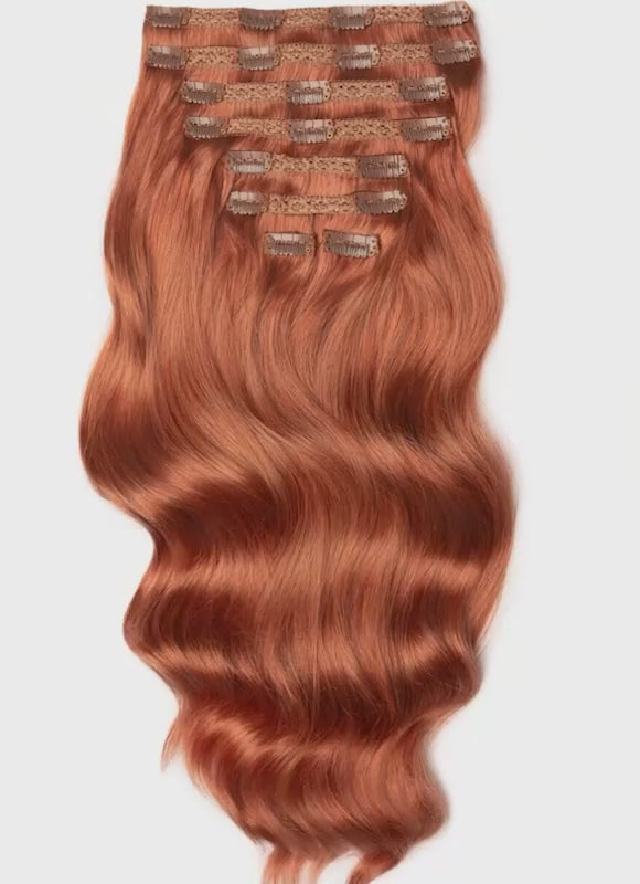 Take your look to the next level with our 24 inch Deluxe Clip-In Hair Extensions in Dark Auburn Red. Crafted from the highest grade 100% genuine Remy human hair, these premium extensions provide luxurious length, volume, and a soft, silky finish that blends seamlessly with your natural hair.
