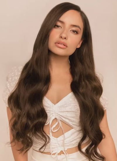 Indulge in the thickest, most luxurious hair extensions we offer — our 24 inch Ultimate Volume Clip-In Hair Extensions in Mocha Brown. Crafted from double drawn, 100% cuticle-aligned Remy human hair, these premium extensions deliver exceptional thickness from top to ends, a soft, silky feel, and stunning, natural-looking volume.