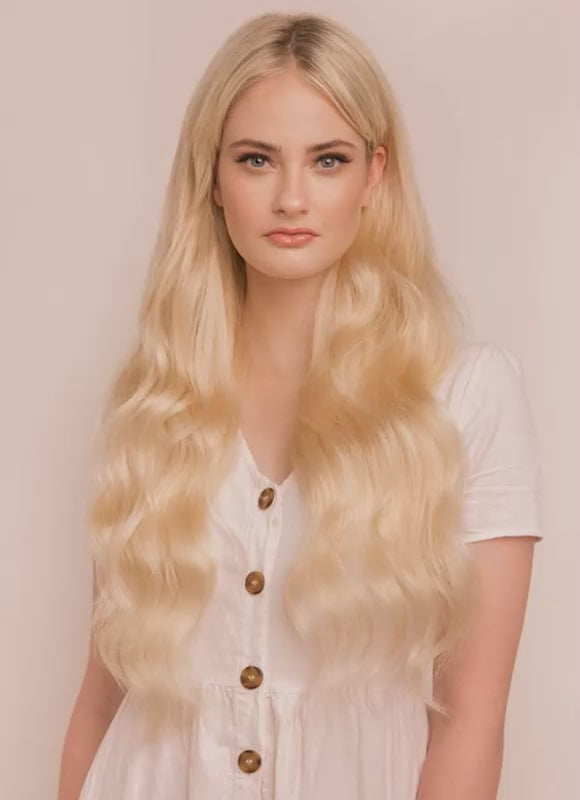 Indulge in the thickest, most luxurious hair extensions we offer — our 24 inch Ultimate Volume Clip-In Hair Extensions in Light Blonde. Crafted from double drawn, 100% cuticle-aligned Remy human hair, these premium extensions deliver exceptional thickness from top to ends, a soft, silky feel, and stunning, natural-looking volume.